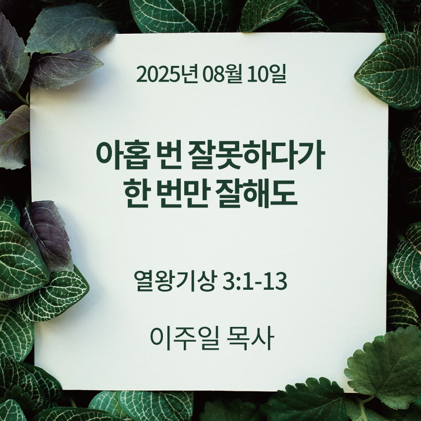 이주일 목사ㅣ아홉 번 잘못하다가 한 번만 잘해도ㅣ열왕기상 3장 1-13절