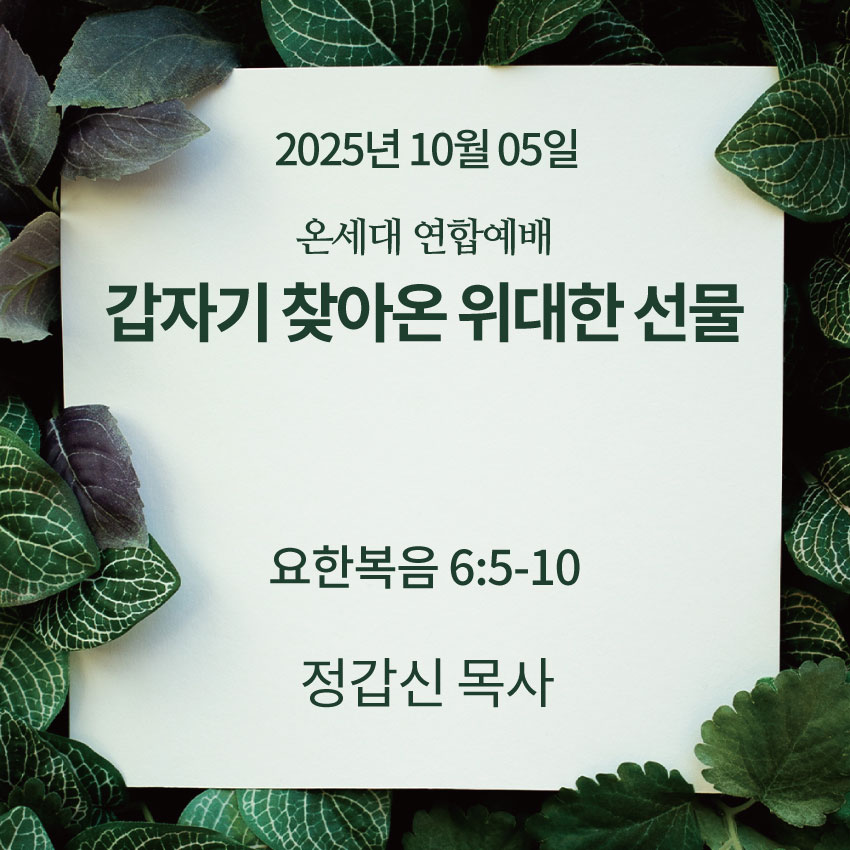 정갑신 목사ㅣ갑자기 찾아 온 위대한 선물ㅣ요한복음 6장 5-10절