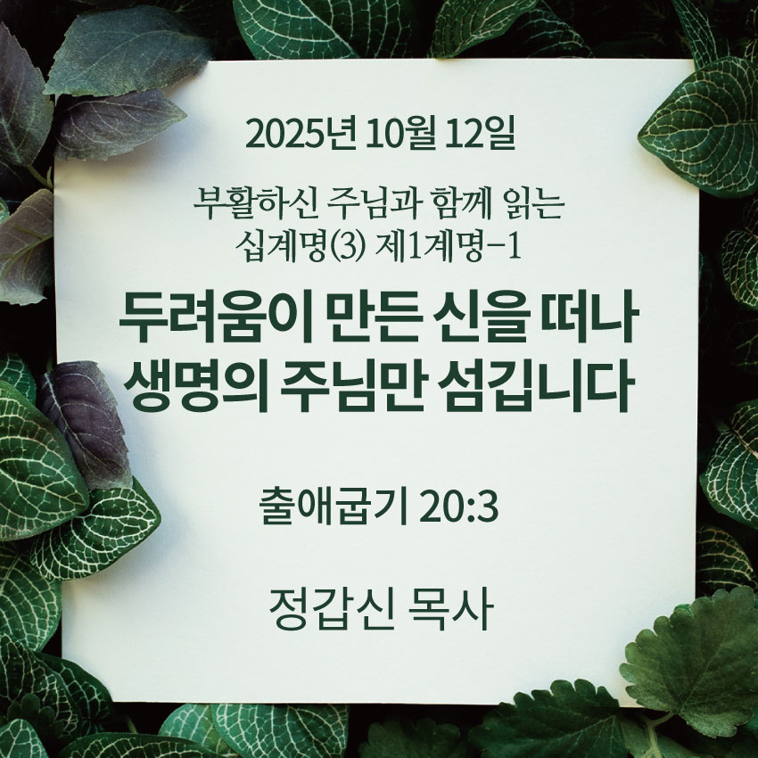 정갑신 목사ㅣ두려움이 만든 신을 떠나, 생명의 주님만 섬깁니다ㅣ출애굽기 20장 3절