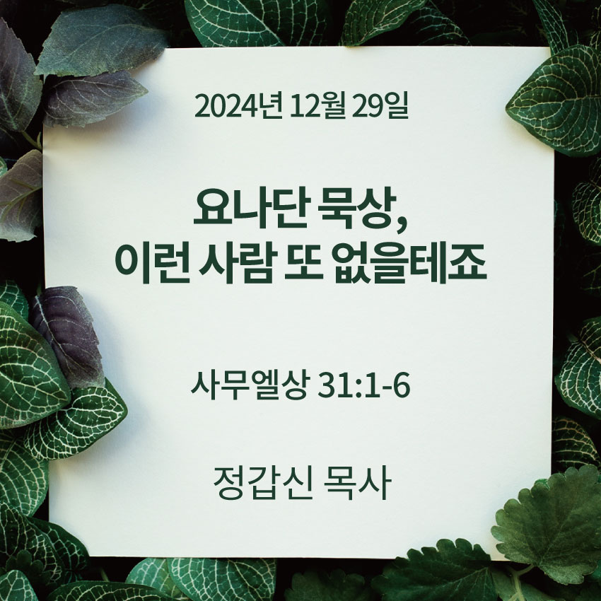 정갑신 목사ㅣ요나단 묵상, 이런 사람 또 없을테죠ㅣ사무엘상 31장 1–6절