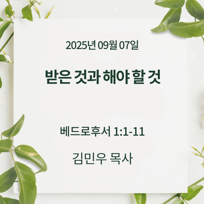 김민우 목사ㅣ받은 것과 해야 할 것ㅣ베드로후서 1장 1-11절