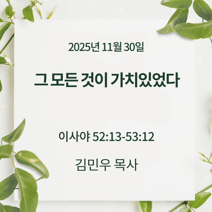 김민우 목사ㅣ그 모든 것이 가치있었다ㅣ이사야 52장 13절 - 53장 12절