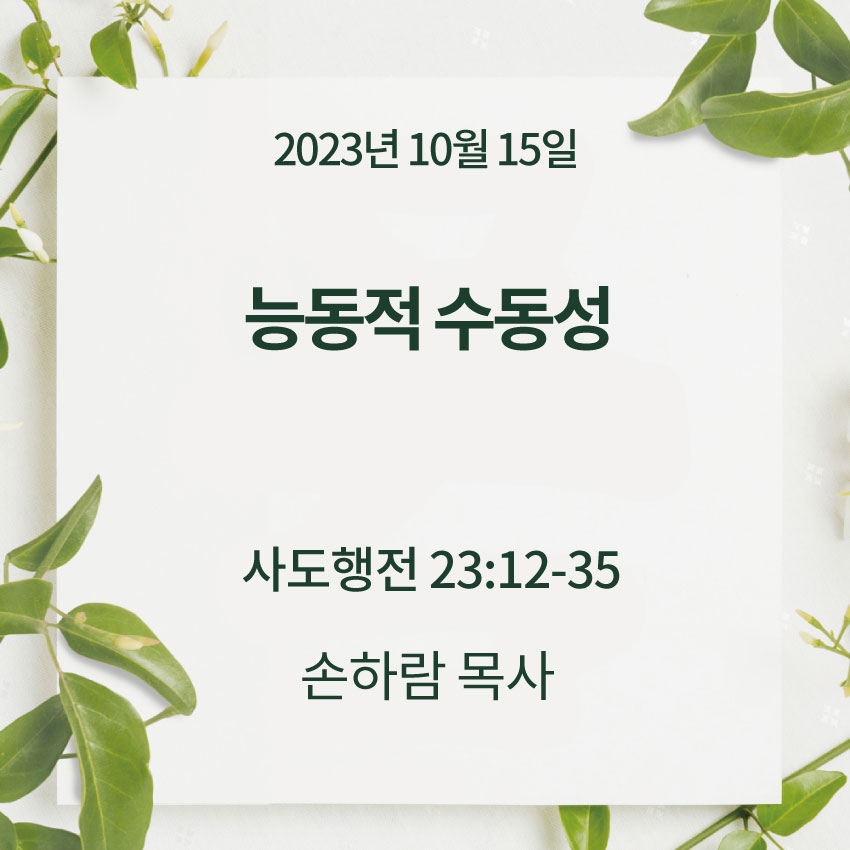 손하람 목사ㅣ능동적 수동성ㅣ사도행전 22장 12-35절
