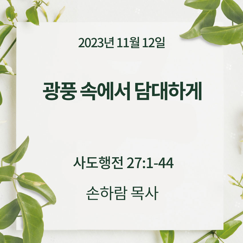 손하람 목사ㅣ광풍 속에서 함께 하기ㅣ사도행전 27장 1-44절